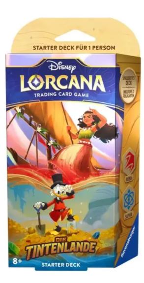 Die Starter Decks Bernstein/Smaragd und Rubin/Saphir enthalten beliebte Disney Charaktere wie Dagobert Duck, Vajana, Peter Pan und die 101 Dalmatiner.