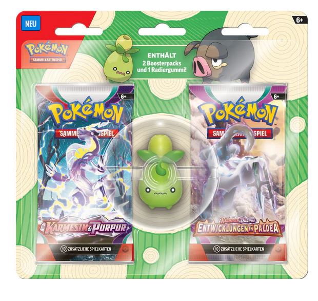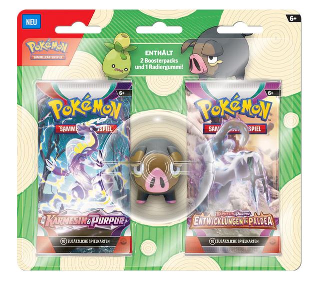 Die Brandeuen Radiergummi Blister mit jeweils einem Ferkuli oder Olini Radiergummi und zwei aktuellen Pokemon Boosterpacks sind perfekt für die kleine Freude für Groß und klein!